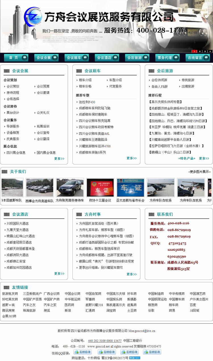 方舟商务会议旅游接待中心成立于一个成熟的环境隶属于四川省国际旅行社,有着四川省国际旅行社旅游资源及服务和专业的礼宾接待车队越野车队及各家高级酒店的支持,专门从事会议活动,商务考察,各种演唱会,休闲旅游,FB川藏特殊旅游的组织和保障工作。